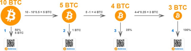 Представляю вам удобный платёжный интерфейс приёма биткоин с дальнейшим распределением денег на несколько адресов. Если вам нужно при поступлении денег, сразу же оплатить часть вашему партнёру или заплатить за контент, который вы перепродаёте. А может быть вам нужно собрать автоматическую реферальную программу или разделить средства на горячий кошелек и в сбережения ?! Вы можете легко использоваться АПИ https://bitaps.com/ru/api/#Create_smartcontract Эта функция очень похожа на обычный приём платежей с колбэком https://bitaps.com/ru/api/#Create_payment_address только POSTом нужно передать процентное соотношение или фиксированную сумму со списком адресов для выплаты. Как только ваш клиент оплатит, произойдёт колбэк в ваш интернет магазин и деньги каскадом разделяться по указанным правилам. Для удобства есть конструктор на PHP/ Python/ cURL. Экспериментируйте с переменными и смотрите результат. А если потребуется помощь в написании кода — пишите мне: [email protected]